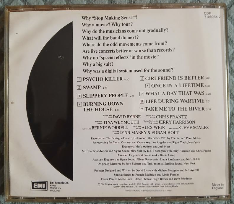 Talking Heads - Stop Making Sense,....CD