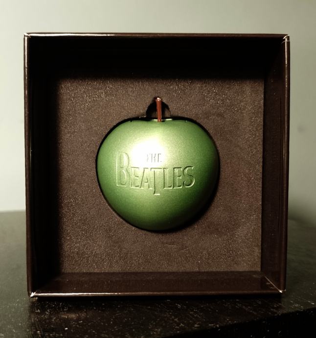 Elegantna crna kutija s ilustracijom zelene jabuke i logotipom Beatlesa
