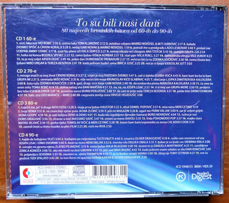 Kompilacija najvećih hitova od 60-ih do 90-ih. Četiri cd-a, novo, neslušano...