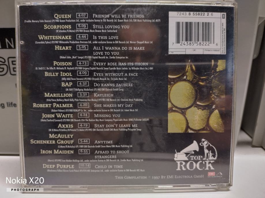 Prodajem rabljeni glazbeni CD "Top 14 Rock Balade" koji sadrži najveće rock hitove. Kompilacija uključuje legendarne izvođače poput Queen, Scorpions, Whitesnake, Heart i Deep Purple. Odlično stanje za ljubitelje najboljih rock balada svih vremena.