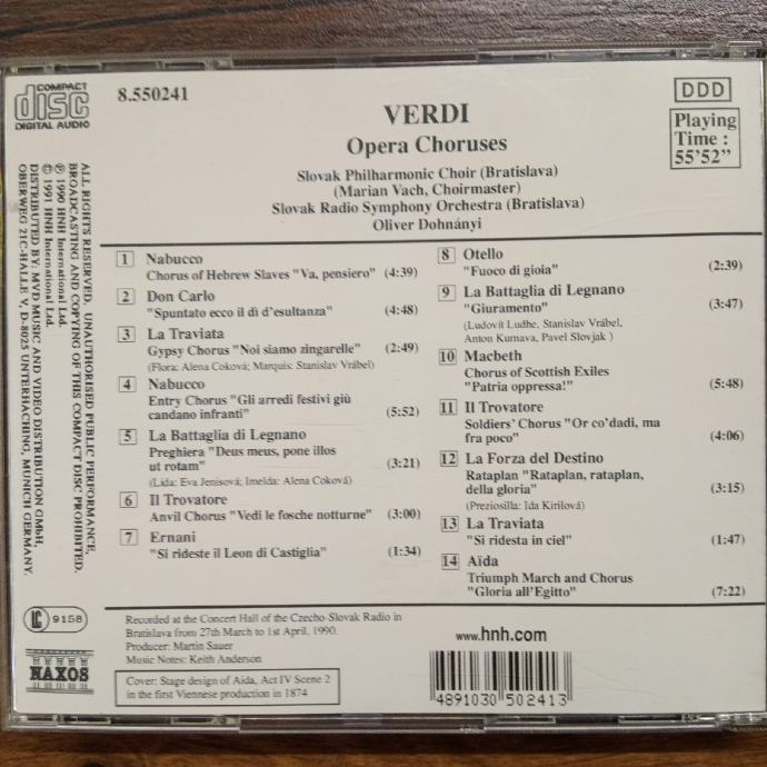 Ulomci iz Verdijevih opera u izvođenju Slovačkog filharmonijskog zbora i Slovačkog filharmonijskog orkestra.