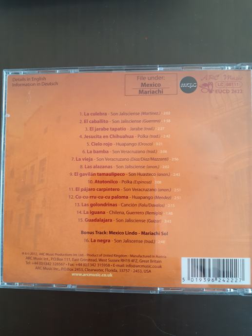 Viva Mexico - Mariachi Sol, kompilacija meksičke glazbe, CD, ARC Music, 2012, odlično uščuvano, moguće razmjene