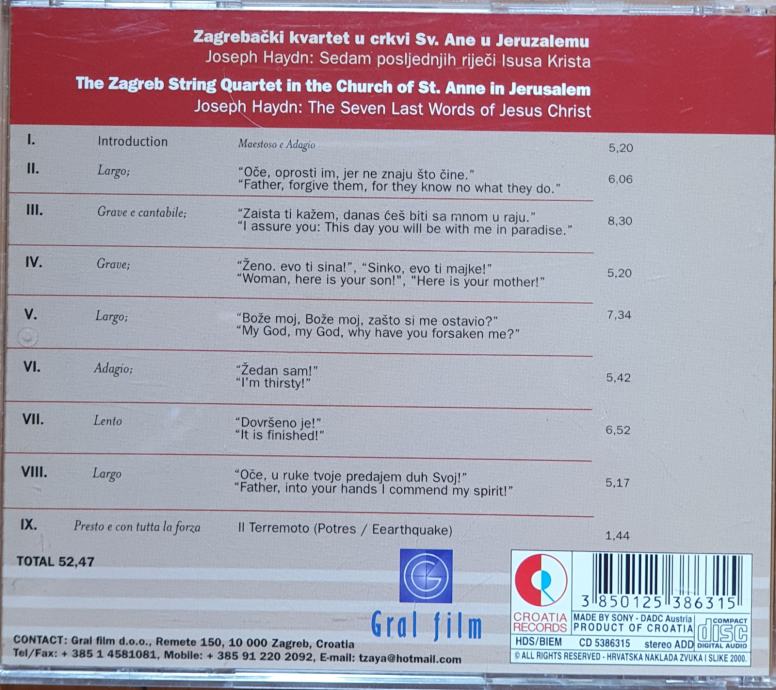 Rariret, Joseph Haydn: Sedam poslijednjih riječi Isusa Krista
