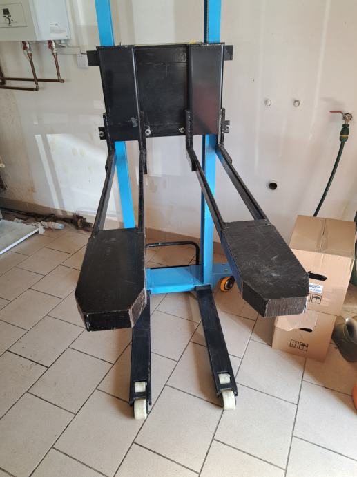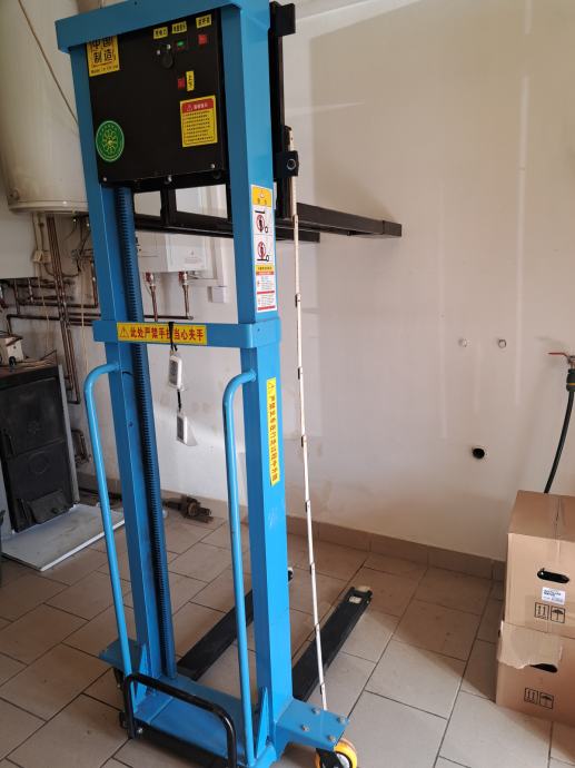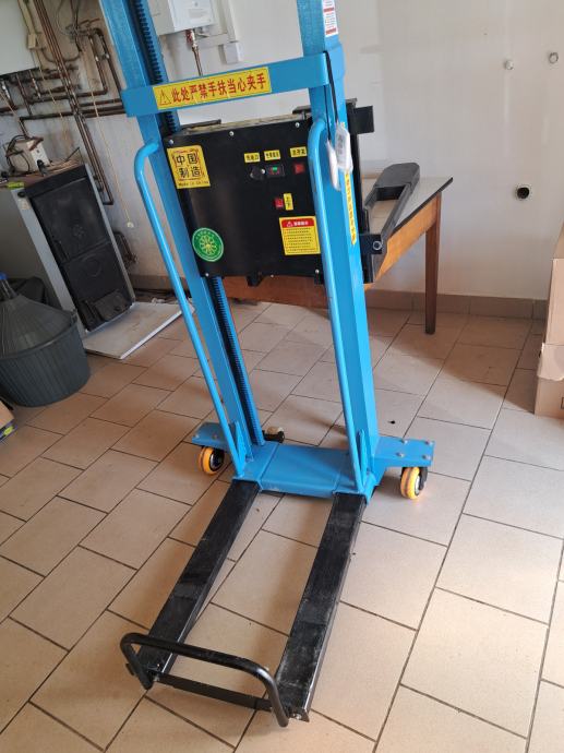 Viličar ima podizanje i spuštanje električno. Manevriranje je ručno.