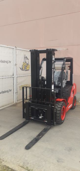 Oprema: PREDNJE STAKLO S BRISAČEM, ZADNJE STAKLO, BOČNI POMAK, KPL. SVJETLOSNA I ZVUČNA SIGNALIZACIJA (prednje radno svjetlo, alarm za vožnju unatrag, rotaciono svjetlo, pokazivači smjera, truba), UDOBNO SJEDALO S NASLONOM ZA RUKE, ZAŠTITNA REŠETKA NA KRANU, OPS - detekcija vozača, STANDARDNE RUČKE UPRAVLJANJA HIDRAULIKOM