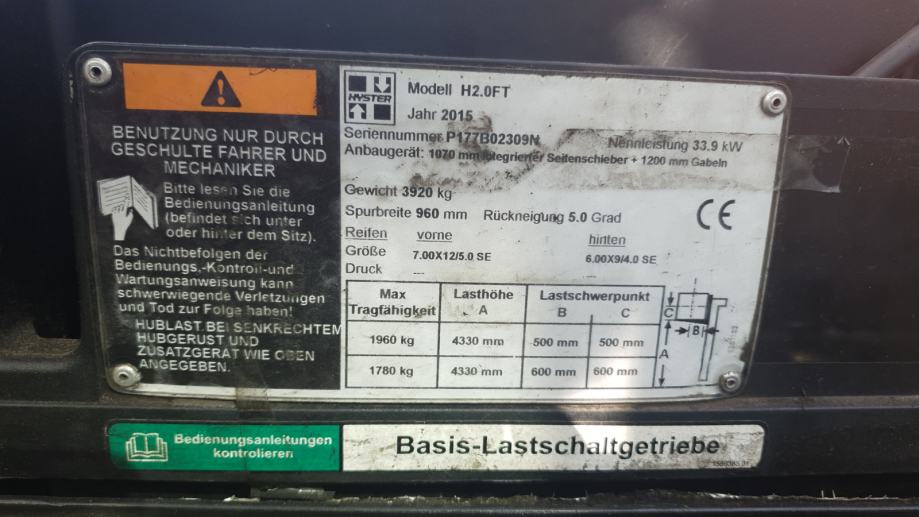 Bočni pomak, vilice dužine 2.4 m, kabina
