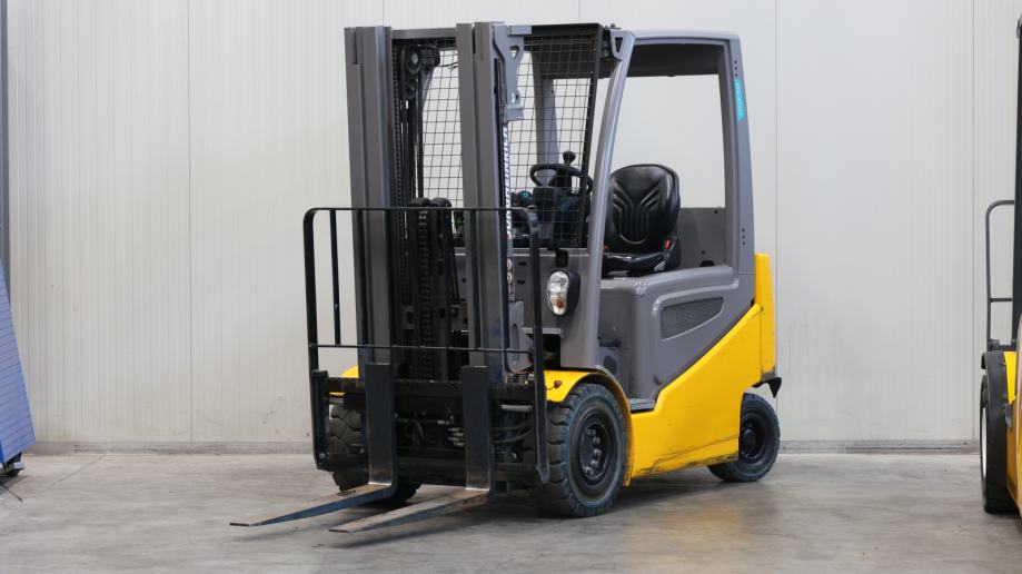 Jungheinrich EFG 425ks je snažan i dobro opremljen električni čeoni viličar s protutežom, koji je izvrsno prikladan za unutarnja skladišta i industrijske hale. Nosivost od 2,5 tone i visina podizanja od 4,4 metra omogućuju svestranu primjenu. Slobodni hod podizanja i bočni pomak omogućuju učinkovito i precizno rukovanje teretom čak i u užim prostorima. Zahvaljujući bateriji u dobrom stanju i udobnom upravljanju, pouzdan je izbor za svakodnevne zadatke manipulacije materijalom.