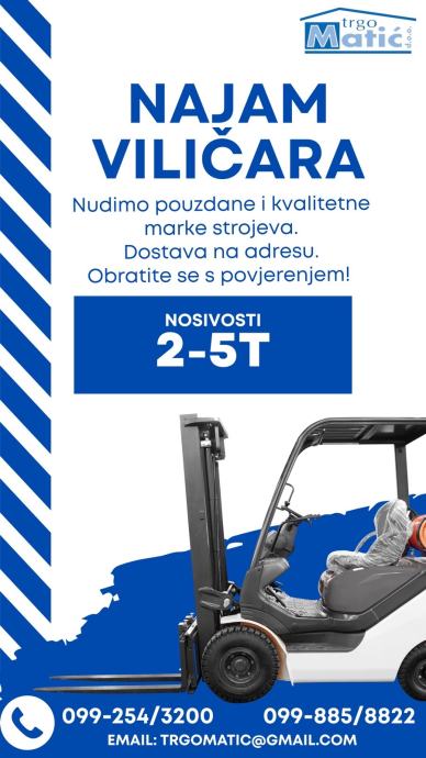 Najam viličara od 2 tone do 5 tona nosivosti