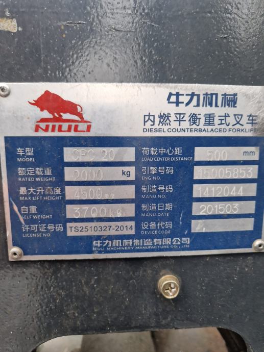 NIULI CPCD2.0T dizelski čeoni viličar 2000kg