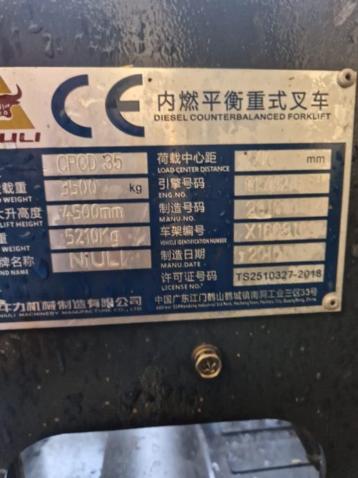 NIULI CPCD3,5t dizelski čeoni viličar 3500kg