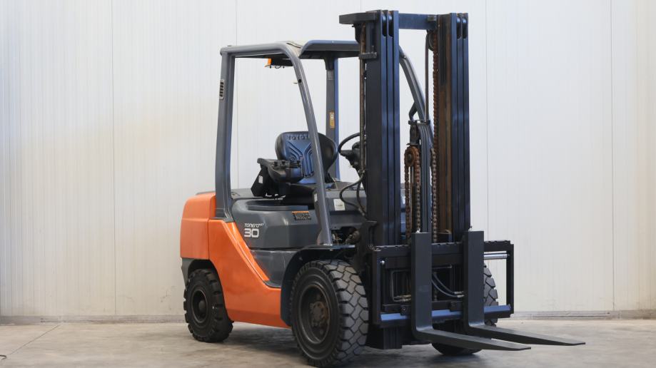 Toyota 8FD30F je pouzdan protutežni viličar velike nosivosti, idealan izbor za vanjska skladišta, radne površine i industrijska okruženja. Nosivost od 3 tone i visina dizanja od 4,7 metara omogućuju svestranu primjenu. Bočni pomak i slobodno dizanje osiguravaju precizno i učinkovito rukovanje materijalom. Zahvaljujući stabilnoj konstrukciji i jednostavnom upravljanju, pogodan je i za intenzivnu svakodnevnu upotrebu.