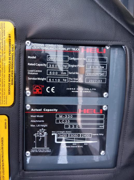 Heli plinski viličar 3500 kg nosivosti