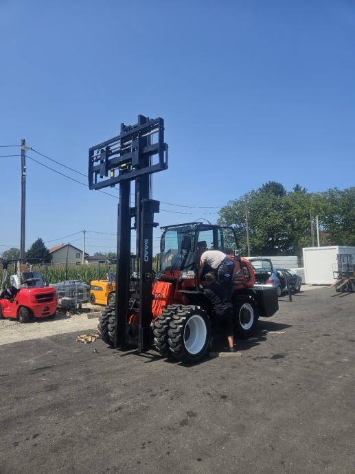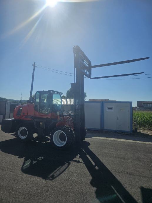 Vilicar 4x4 terenski 7 tonac sa zatvorenom kabinom. Vilice su dugacke 270cm sa bočnim posmakom i pozicionerom.