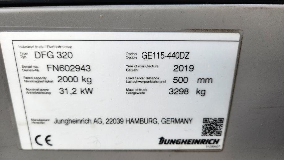 Nominalno opterećenje pri COG: 2t – Standardne gume: SE 2x/2 – Težište: 500mm – Težina: 3,21t – Ukupna širina: 1130mm – Visina konstrukcije: 2185mm