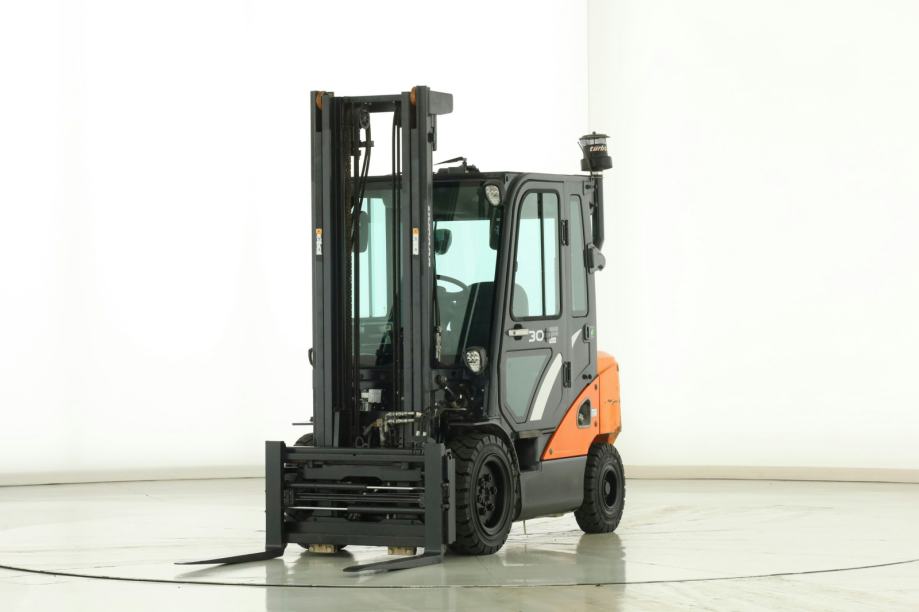 Prodajemo viličar Doosan D-30-S-7, idealan za rad u skladištu i izvan njega. Opremljen je bočnim pomakom te pozicionerom vilica što osigurava učinkovitu manipulaciju teretom i lako upravljanje.