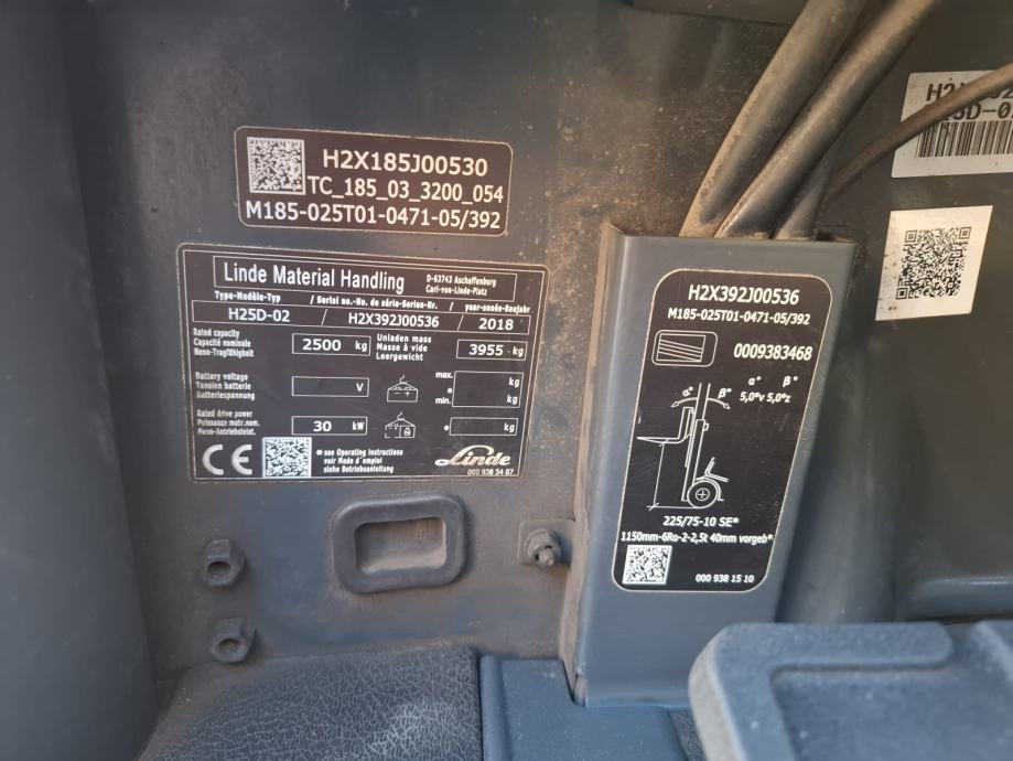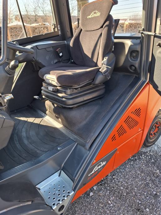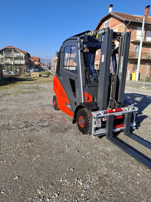 Viličar Linde H25D-02 ful kabina s grijanjem i vanjskom led rasvjetom. Triplex kran s visinom dizanja 4710mm, spušten kran visine 2115mm, naprava Durwen 2.5t, bočni pomak plus pozicioner vilica. Raspon vilica 485-1100mm i dužina vilic 1200mm.