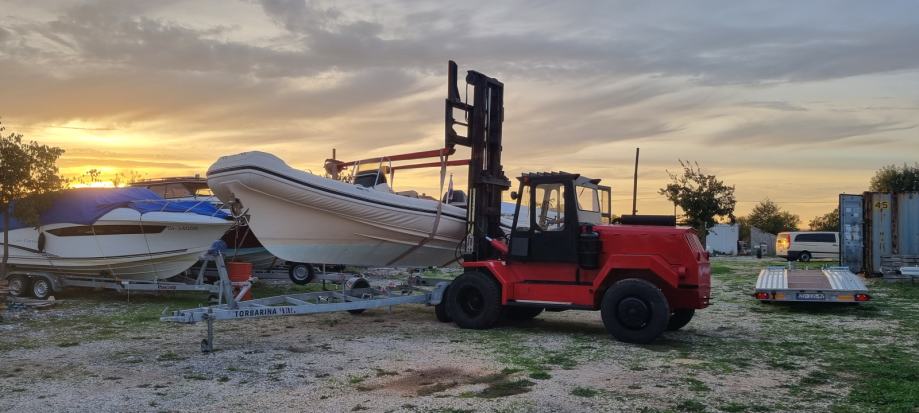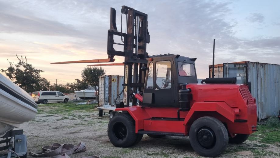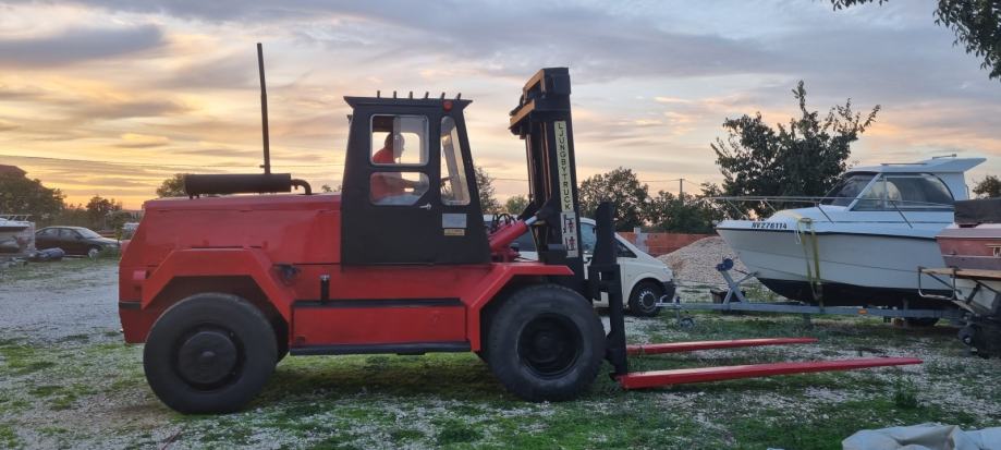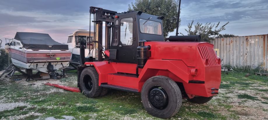Nosivost je 8 tona, visina podizanja je cca 3,30 m. Vilice se mogu skupljati i širiti. Mjenjač ima 3 brzine, gume su 20"-22.5". Prednja rasvjeta je ispravna, a stražnju bi trebalo urediti. Radi na 24V. Duljina produžetaka je 3 metra.