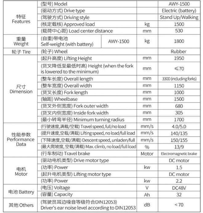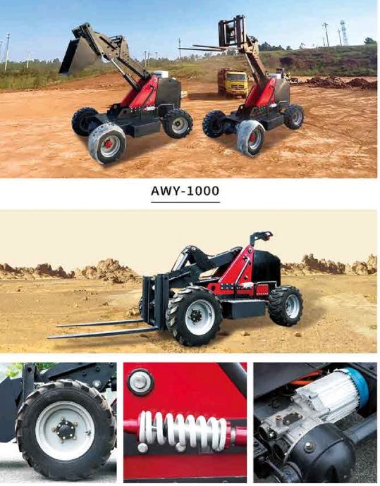 Terenski viljuškar visine 150 mm od tla s terenskim gumama, namjenjen kretanju po gradilištu, voćnjaku i drugim prostorima nedostupnim običnim viličarima