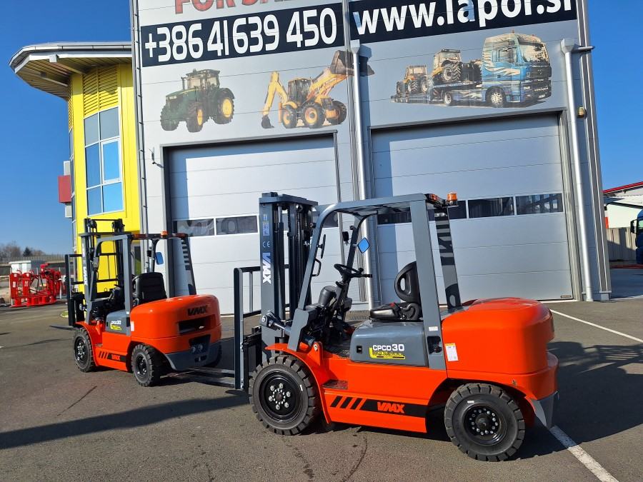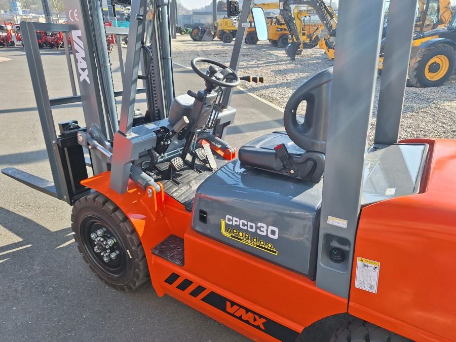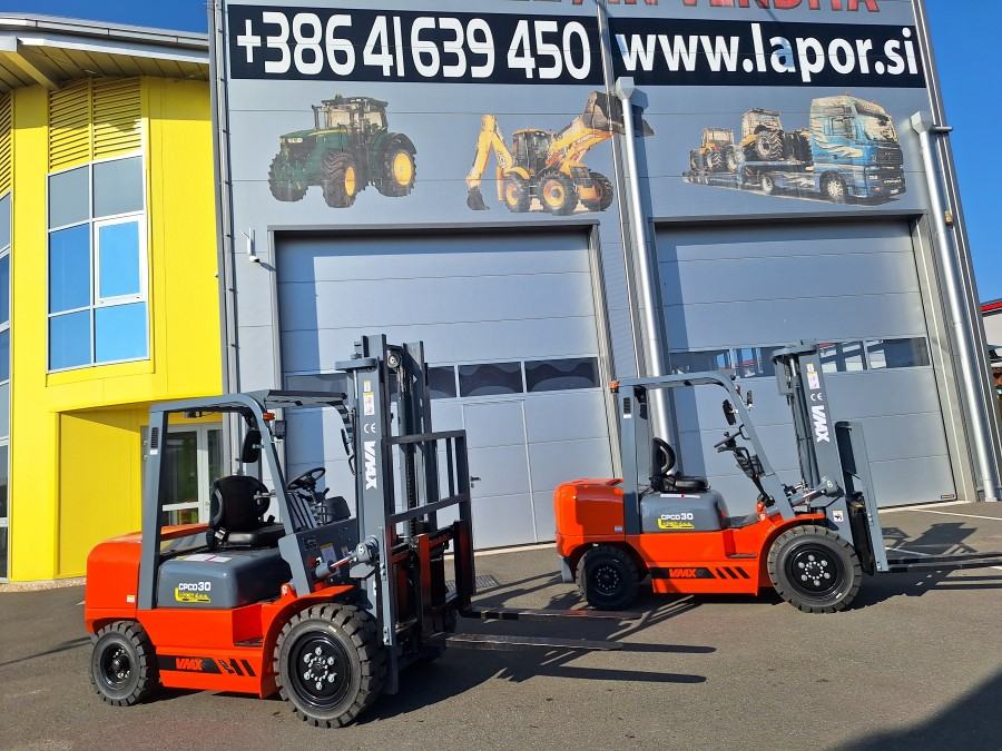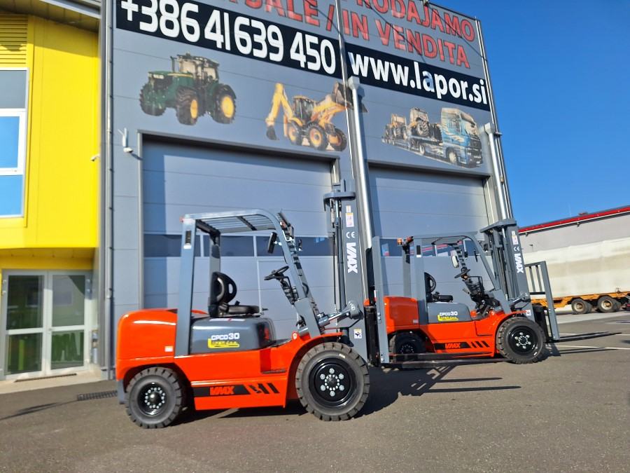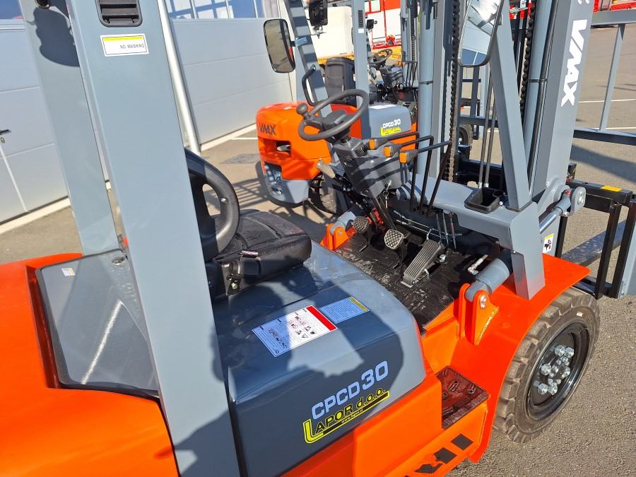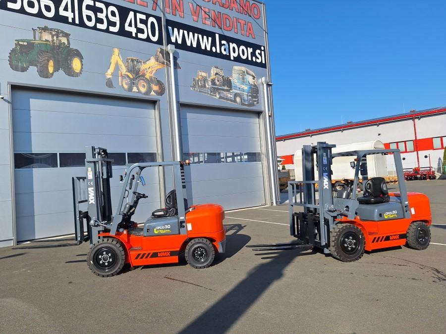VILJUŠKAR MARKE WMAX CPCD 30 , 3.000 KG, DIESEL MOTOR , BOČNI POMAK, VISINA DIZANJA TERETA 330 CM, DUŽINA VILJUŠK 110 CM, ŠIRINA VILJUŠKARA 120 CM, DUŽINA VILJUŠKARA BEZ VILJUŠK 270 CM, VISINA DO KROVA 208 CM , MOTOR 4 KLIPA DIESEL 36.8 kW RADNA SVIJETLA, ROTIRKA CIJENA U SLOVENIJI BEZ PDV : 14.000 EUR , MOGUČA ISPORUKA VILJUŠKARA SA VISINO DIZANJA 450 CM- TRIPLEX - DOPLATA 1.500 EUR