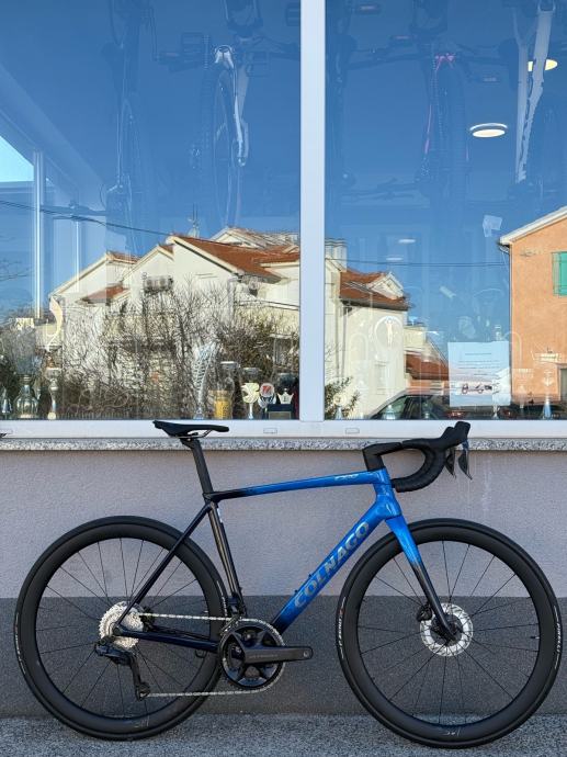 Colnago C68 Disc predstavlja premium klasu cestovnih bicikala, gdje se tradicija talijanske izrade susreće s najnovijom tehnologijom. Okvir je modularno izgrađen od nekoliko karbonskih elemenata, ručno sastavljenih u Cambiagu, što osigurava iznimnu krutost, preciznost i prepoznatljivu Colnago estetiku.