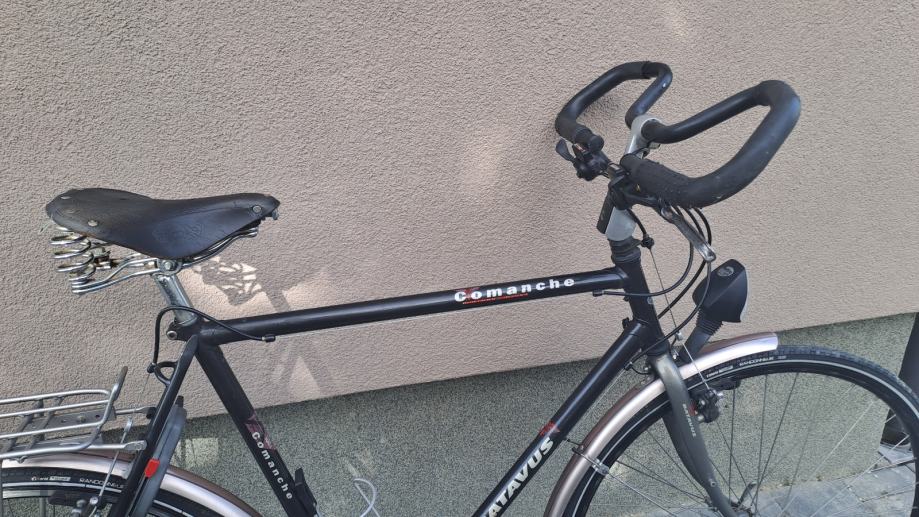 Cestovni bicikl Batavus Comanche...vrlo rijedak primjerak, kvalitetan, mogućnost tereta na oba točka, za duge vožnje, sve vidljivo na slikama, mjenjac shimano STX, sjedalo Brooks, nove prednje i zadnje gume..