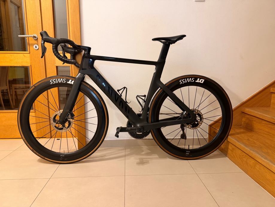 Prodajem Canyon Aeroad CFR Stealth iz 2023., vrhunski aero cestovni bicikl s Dura-Ace Di2 grupom, ROTOR spider powermeterom i DT Swiss 62 mm kotačima.