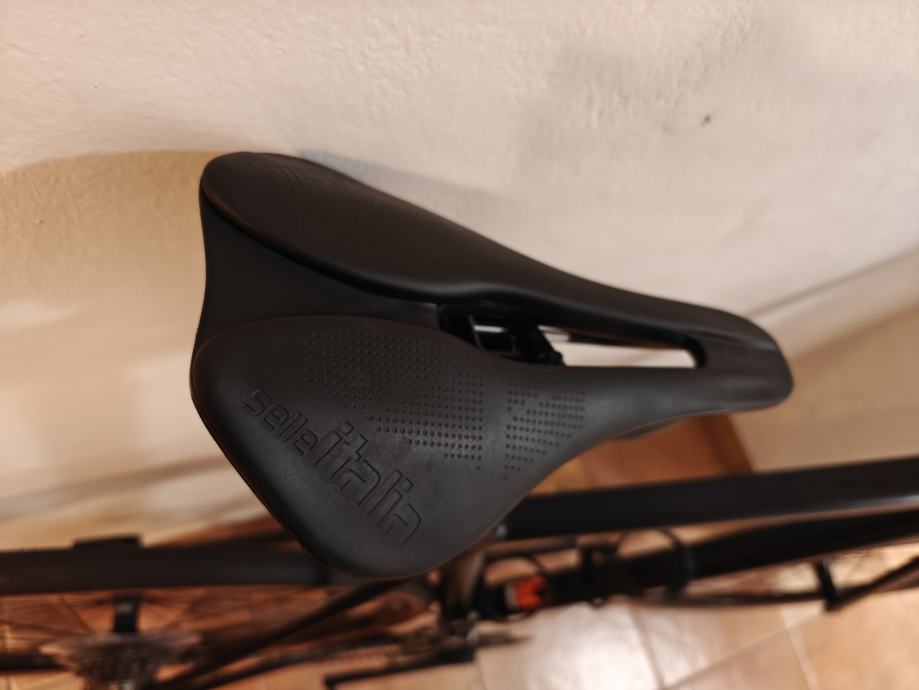 Ergonomic aluminium handlebar with curved design for optimal pressure distribution.