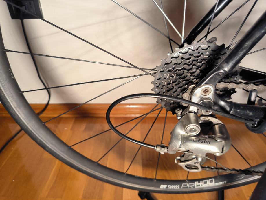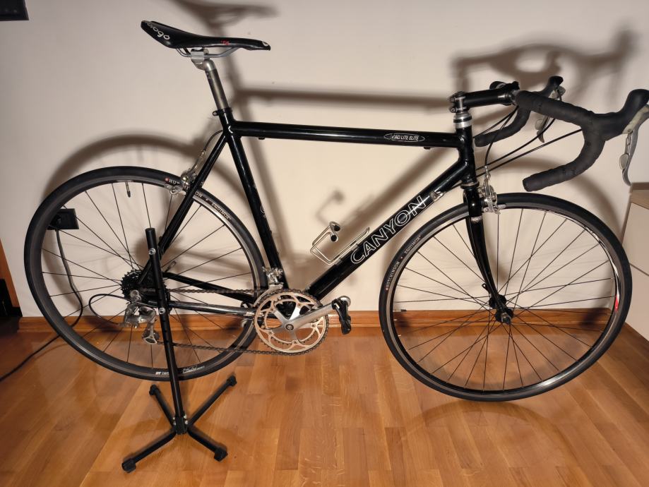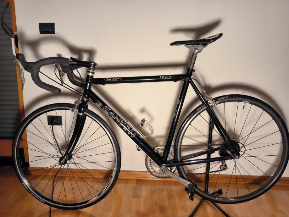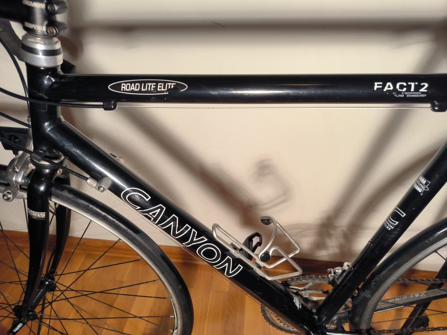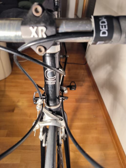 Canyon RoadLite Elite, velicina 58 cm, top tube 58 cm. Bicikl je uredno servisiran, nova traka volana, sjedalo, lanac i kazeta. Oprema Shimano ultegra 2x9, novo Pro Logo TR sjedalo.