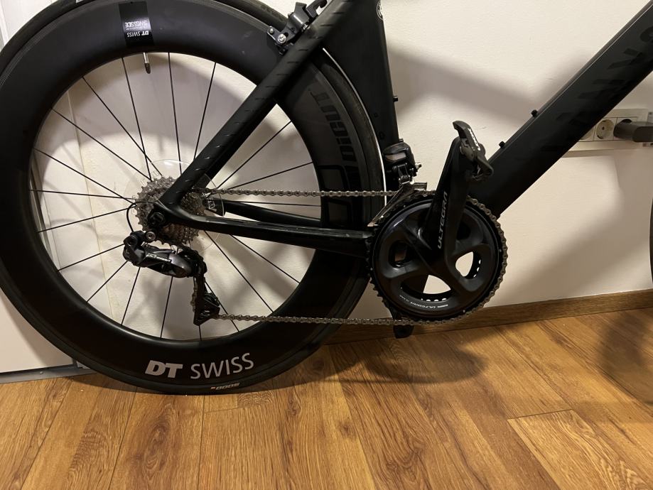 Bicikl nikad vozen vani, iskljucivo na trenazeru. Svekupno mozda 200km za vrijeme kovida :-) Vlasnik ima veliki trbuh koji mu nije dao vise
