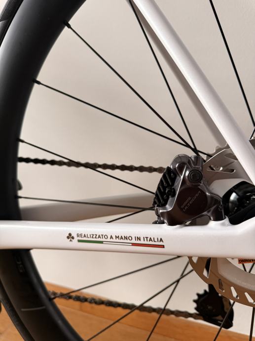 Colnago C68 Disc predstavlja vrhunac cestovnih bicikala, gdje se tradicija talijanske izrade susreće s najnovijom tehnologijom. Okvir je modularno konstruiran od više karbonskih elemenata, ručno sastavljenih u Cambiagu, što osigurava iznimnu krutost, preciznost i prepoznatljivu Colnago estetiku.