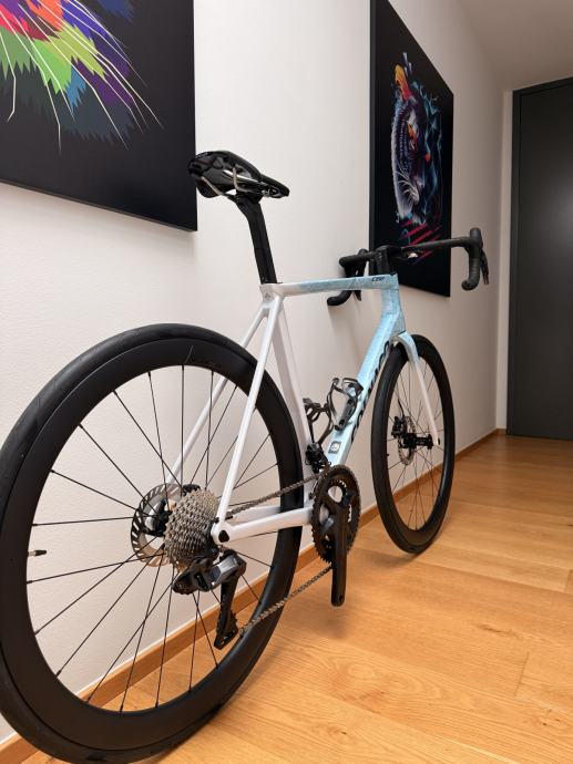 Prodajem novi Colnago C68, nikad korišten, kupljen 16.12.2025. od ovlaštenog Colnago prodavača bicikala s računom i jamstvom. Bicikl je u fantastičnoj HSWH boji, opremljen Shimano Ultegra Di2 elektroničkom ručicom mjenjača i Vision 45 aero kotačima. Veličina bicikla je 530, pogodno za visinu od 175-185 cm. Prodaje se s karbonskim držačima za bidone i Garmin nosačem, bez pedala.