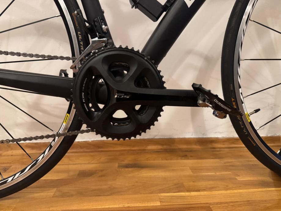 Dolan l'Etape veličina rame: 48cm (MEDIUM). Top tube = 545 mm, seat tube = 480 mm. Za visinu 170 cm - 178 cm (za referencu, vozač je visok 176 cm).
