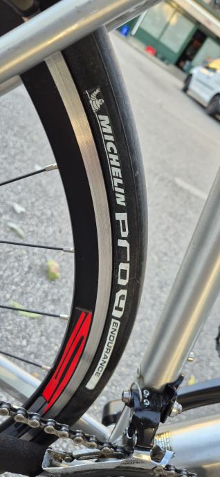 Bicikl u top stanju, za vozača iznad 180cm, malo korišten, karbonska vilica, rama polirana, mjenjači sora 2x9,kočnice tiagra, gume vitoria rubin i michelin pro 4, dimenzija gume 700x25c,
