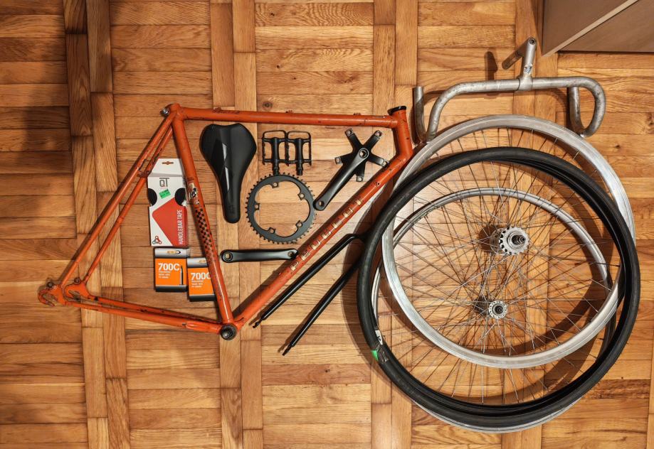 Fixie/ single speed,složen na vintage Peugeot Corsa rami.