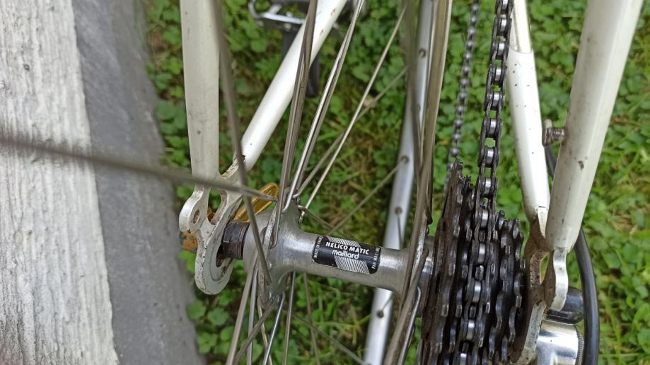 ROAD racesport/rennsport - Kotači RIGIDA rims 13-622 profil visina16mm širina 19,5mm - MAILLARD hubs low flange - Žbice inox/nirosta-CRANKSET SHIMANO touring Alu 170 - 42-52 - BB 68mm 1.37X 24 - Mjenjači Frikcija 2 x 6 - Zadnji Shimano 600 - prednji i ručice SIMPLEX - KRANZ 6 speed index novi silver 14-28 - Volan 40 cm i Lula 110 cm France - Kočnice komplet WEINMANN type 500 - Gume CST 23-622 - 28" - Pedale LYOTARD 82 Clipseri i remeni - Patent lula sedla 25 mm - Sedlo Vader - Za vozaće i vozačice 167- 177 cm do 80 kg. težine - TEŽINA bicikla oko 10,8 kg. - Original boja rama i vilice - original naljepnice -*** Maillard HELICOMATIC zadnja naba i kazeta na slikama skinuta i stavljena isto MAILLARD za kranz *** Miro mob.098 529 693 -velogrga.1949@gmail.com