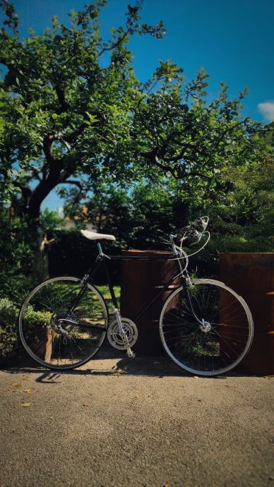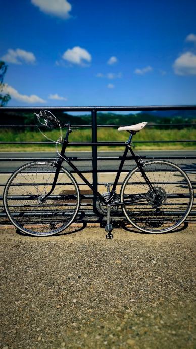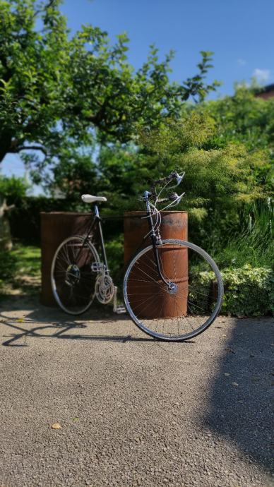 Bicikl je u izvanrednom stanju. Promijenjeni su svi ležajevi, bottom bracket (očišćen i podmazan), sajle i kablovi su novi. Pedale su također nove, a ostatak dijelova je restauriran. Kočnice, kotači i ostali dijelovi su ispoliran do visokog sjaja. Kočnice rade vrhunski isto kao i brzine. Bicikl je prefarban u matt crnu boju (boja je malo popucala na nekim mjestima zbog sunca - ništa strašno). Na rami nije bilo hrđe. Bicikl je izložbeni primjerak i bio bi odličan za neki bike shop, muzej, restoran... Ja ga prodajem iz razloga što ga ne mislim voziti pa bolje da ga netko drugi vozi, a ne da skuplja prašinu. Zadnji put je vožen ovo ljeto (ove godine je napravio oko 50km, svaka vožnja je bila duga 3km).