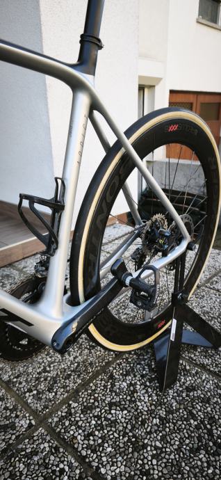 Kotači: Bontrager Aeolus 6 (visina 60 mm, gloss, DT Swiss freehub, Aero žbice, vrlo lagani). Tubular (cijevni).