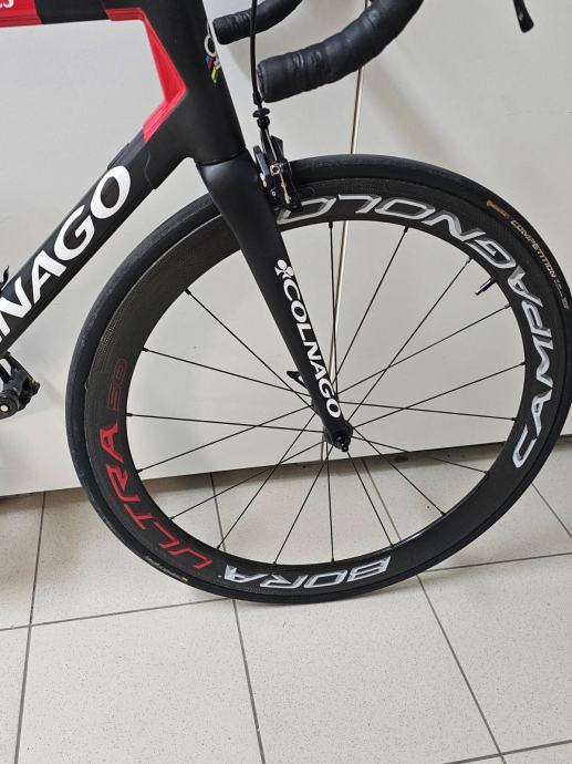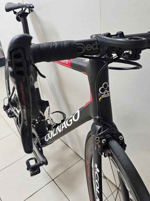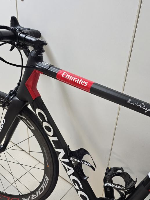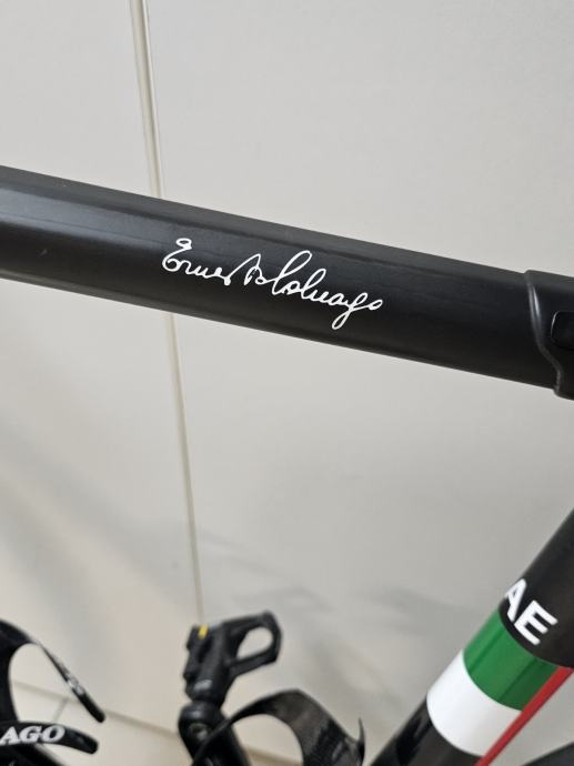 Prodajem timski bicikl UAE Conlago C64 ,veličina 56 za vozače visine 185 - 195. Oprema : kotači Campagnolo Bora ultra 60mm tabulari. Grupa Campagnolo super record 12b.EPS. Bicikl je u savršenom stanju. Vozio ga je Shuterland iz Australije za tim UAE vidljivo na fotografiji. Ja ga prodajem je imam zdravstvenih problema . Cijena 3000,00 eura. U cijenu nisu uključene pedale. Nosače bidona i lulicu upravljača120mm 3T poklanjam.Odlična prilika za zaljubljenika