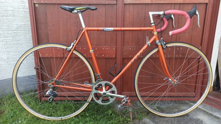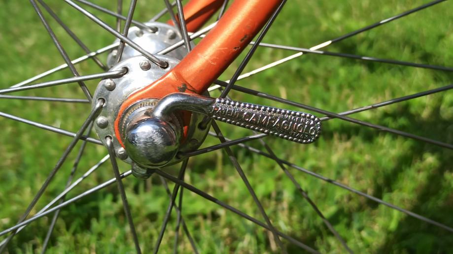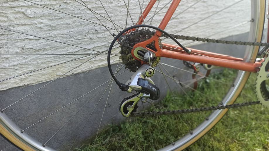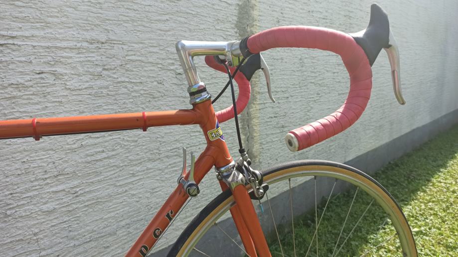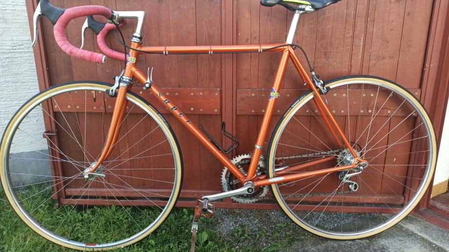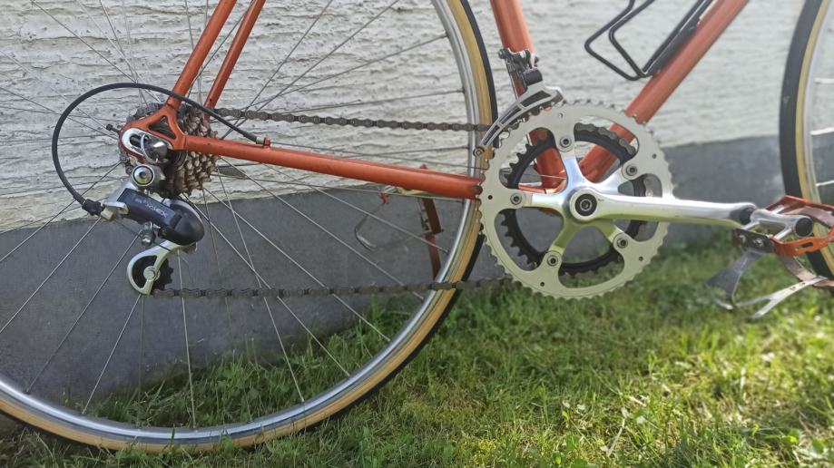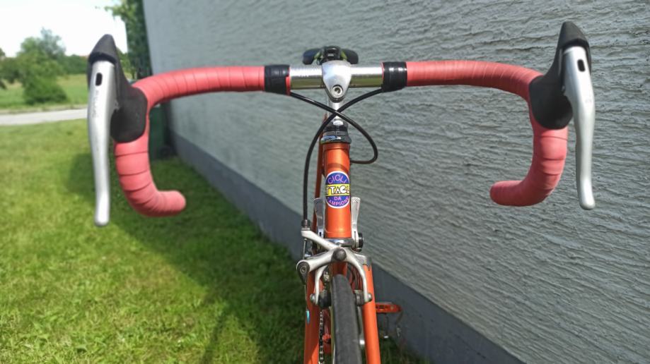 Frame & vork/vile tipo CORSA Oria TT08 farba/boja orange/metalic original. dropovi kotača Campagnolo, Crankset THUN Germany Aero CORONADO - BCD 130 mm - 170 mm - 36 x 24 ITA - 39-52, kočnice AERO DIA COMPE EDGE 42-52 mm Japan/ ***DIA COMPE non aero leveri za za L Eroica dostupni/*** sedlo Flite Selle ITALIA - lula 26,6 mm SR Japan, volan i lula 3ttt Italy, kotači tubular MAVIC felge 32h, Hub/Nabe ZEUS Spain /rang Campa Gran Sport NT/ tubulari novi Conti GIRO , mjenjači zadnji SHIMANO 105/1050 INDEX 6 speed, prednji Cambio RINO - kranz Shimano index 14-24 6 speed, lanac, pedale XLC klipseri i remeni NOVO, HS ležaj vilice NOVO TANGE LEVIN CD JAPAN, podesiv za vozače 167 - 177 cm -Težina/Gewicht/Weight bica 10 kg - ** AKO ne želite Tubular kotače - Može ZEUS New Racer - MAVIC MA kotači klinčer rims/felgen sa gumama 23-622 šifra oglasa na njuški 40059946 - cijena ostaje ista** - velogrga.1949@gmail.com - Miro mob. 098 529 693