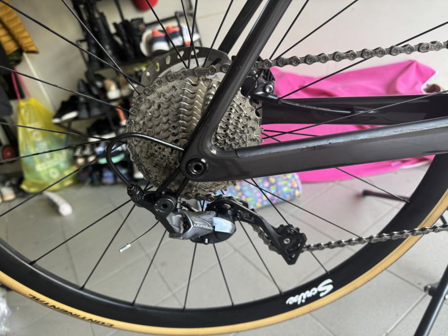 Bicikl dolazi s originalnim kotačima koji su na prvoj slici te bez pedala i garmin nosača