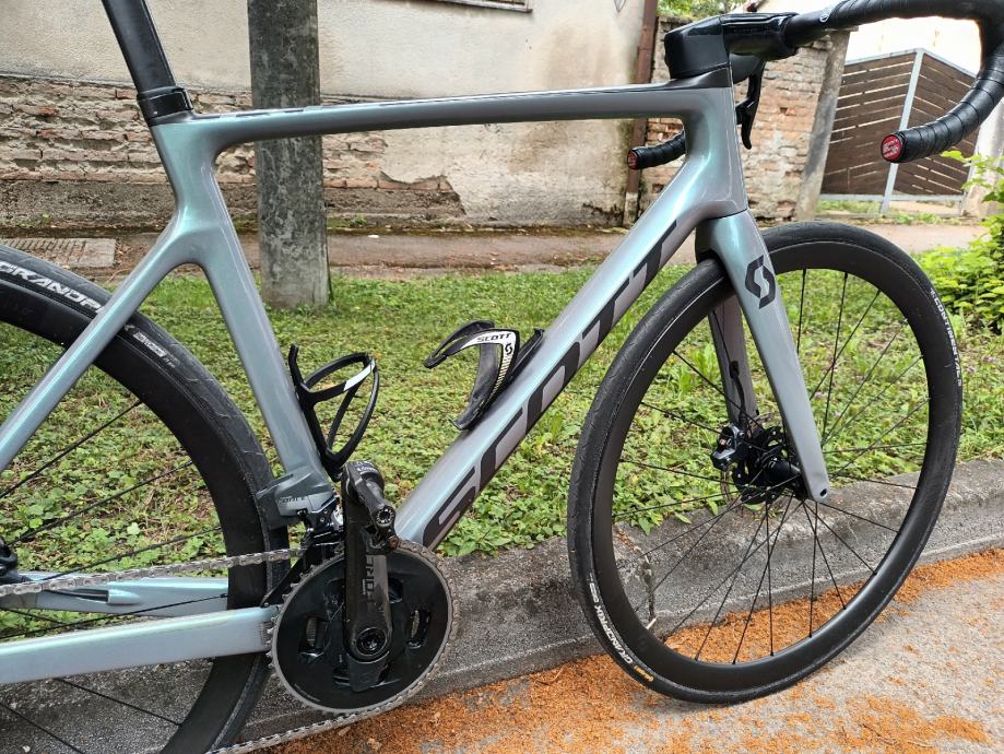 Velicina 56, za visinu od 175 do 185cm, sram force axs 2x12 full grupa, hidraulične kočnice, elektronički mjenjači + quark power meter, karbonski synchros kotači 35mm, continental gume, prodaje se bez pedala