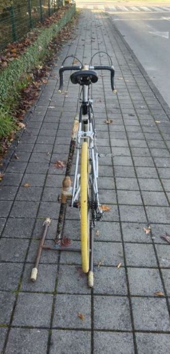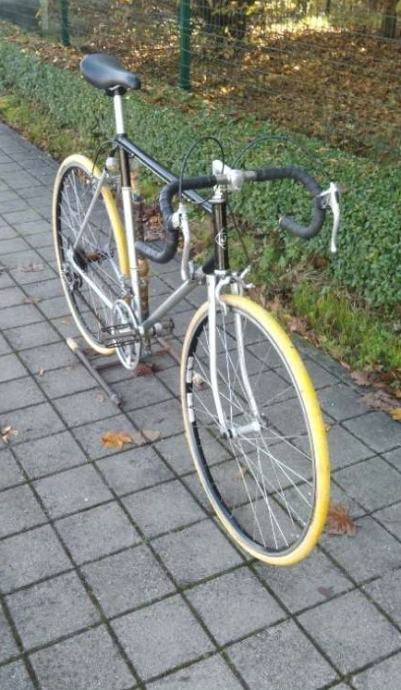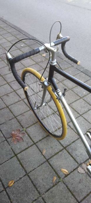 Vintage njemački trkači cestovni bicikl specka J iz ranih 80tih godina, Custom pogon, Weinmann kočnice, Simplex mijenjači, KENDA gume itd. Bicikl potpuno ispravan i brz u vožnji. Cijena 100€ fiksno, prema potrebi šaljem kurirskim službama ili busem nakon vidljive uplate, dostavu plača kupac. Info na tel 0996724175