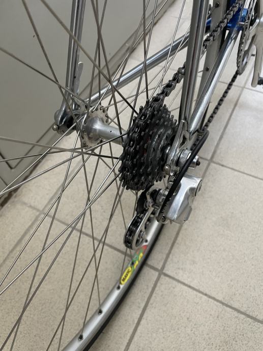 Prodajem trkaću biciklu, sa gravurama Fredy Ruegg iz kraja 70ih. Rama je od Reynolds 531 cijevi, veličine 54cm. Kompletna grupa na bicikli je Shimano 600, sa 12 brzina. Kotači su Mavic MA3, sa Shimano 600 nabama.