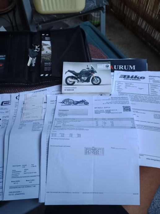 Dodatne opreme na motoru i uz motor je stvarno puno. 2 Puig tamna vizira (visoki touring i manji sportski) + rezervni originalni vizir, Bagster Gel sjedalo + originalno, crash barovi bočni, zaštita hladnjaka i utezi EVO TECH 3 kofera (2 bočna BMW i centralni Shad 47L), Auspuh SC-Project Carbon (upisan u prometnu) + serijski, nove ne postavljene kočione pločice, rezervni novi stražnji lančanik,nova guma Continental Sport Attack 4 stavljena prije par dana,dva nosača za kameru(bočno i ispod fara na sredini),proširenje nogara