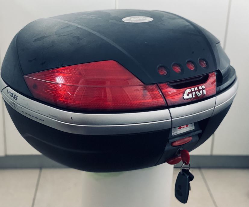 - GIVI stražnji kofer zapremnine 46 L - u dobrom stanju, izgubljen desni reflektor; držač je montiran