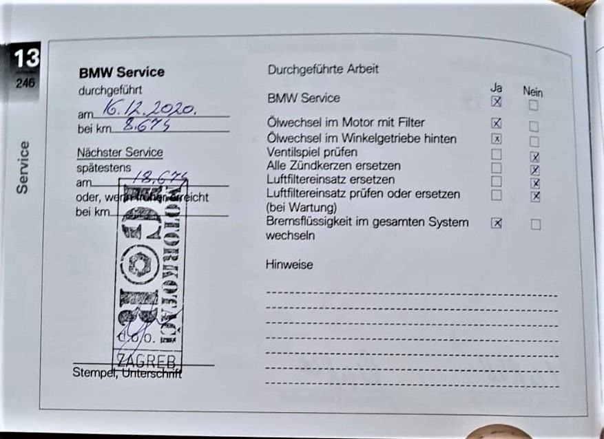 Dana 16.12.2020. na 8674km napravljen je redovan servis te je motor spreman za sezonu.