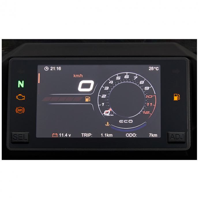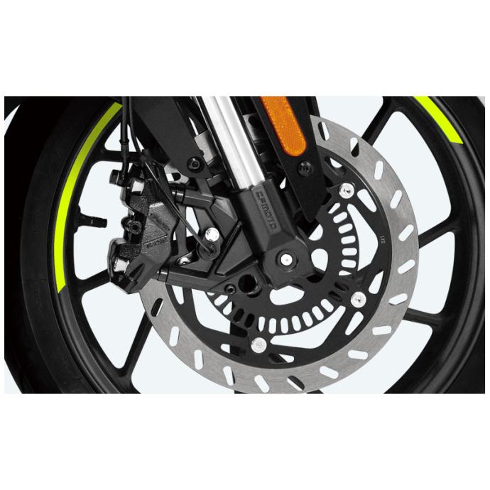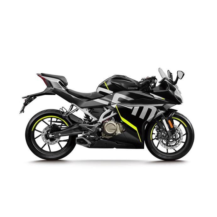 CFMoto 300SR je sportski motocikl s impresivnim performansama i modernim dizajnom. Pokreće ga 300 ccm motor s tehnologijom tekućeg hlađenja, što mu omogućuje brze ubrzanja i visoku maksimalnu brzinu. Zahvaljujući sportskom dizajnu, ovaj motocikl nudi izvanrednu stabilnost i upravljivost na cesti. CFMoto 300SR opremljen je naprednim sigurnosnim značajkama, uključujući ABS sustav i CBS kočnice, kako bi vožnja bila što sigurnija. Uz moderni digitalni instrument ploču, LED svjetla i sportsko sjedalo, CFMoto 300SR pruža udobnost i estetiku, čineći ga idealnim izborom za sportske entuzijaste.
