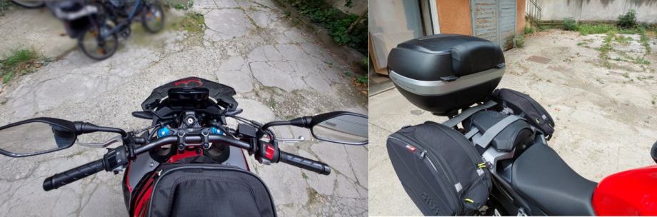 Opremljen je Givi stražnjim koferom i Givi bočnim torbama, te manjom torbom na rezervoaru. Bočne torbe imaju navlake za kišu, a motocikl je opremljen ceradom za kišu. Nakon kupnje ugrađena je čelična zaštita motora, malo vjetrobransko staklo, centralni nogar i štitnici na guvernalu. Auspuh je tvornički.