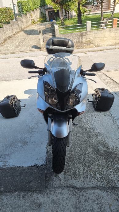 Nove gume Pirelli Angel , novi namotaji, redovito servisiran. Bez greške i bez ulaganja. Originalno stanje i izvrsno stanje. Jako vozan motor sa izvrsnim zvukom. U cijeni su 3 kofera bočni hepco& becker a zadnji givi i original auspuh. Auspuh Leo Vinci upisan u prometnu. Moguča zamjena za putnički kombi 8 ili 9 sjedala. Može i u kombinaciji sa drugim mojim oglasima.