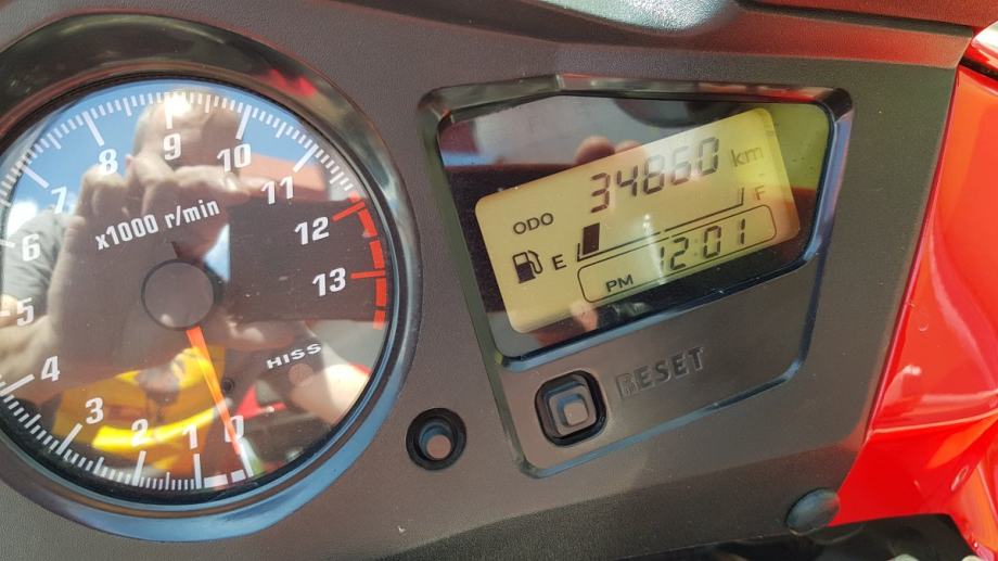 Od dodatne opreme tu je povišeni Givi vjetrobran, originalni centralni nosač s koferom u boji motora (doplata od par tisuća kuna) , te Bagster navlaka za rezervoar + dupla crna kožna tank torba koja se pričvršćuje na isti.